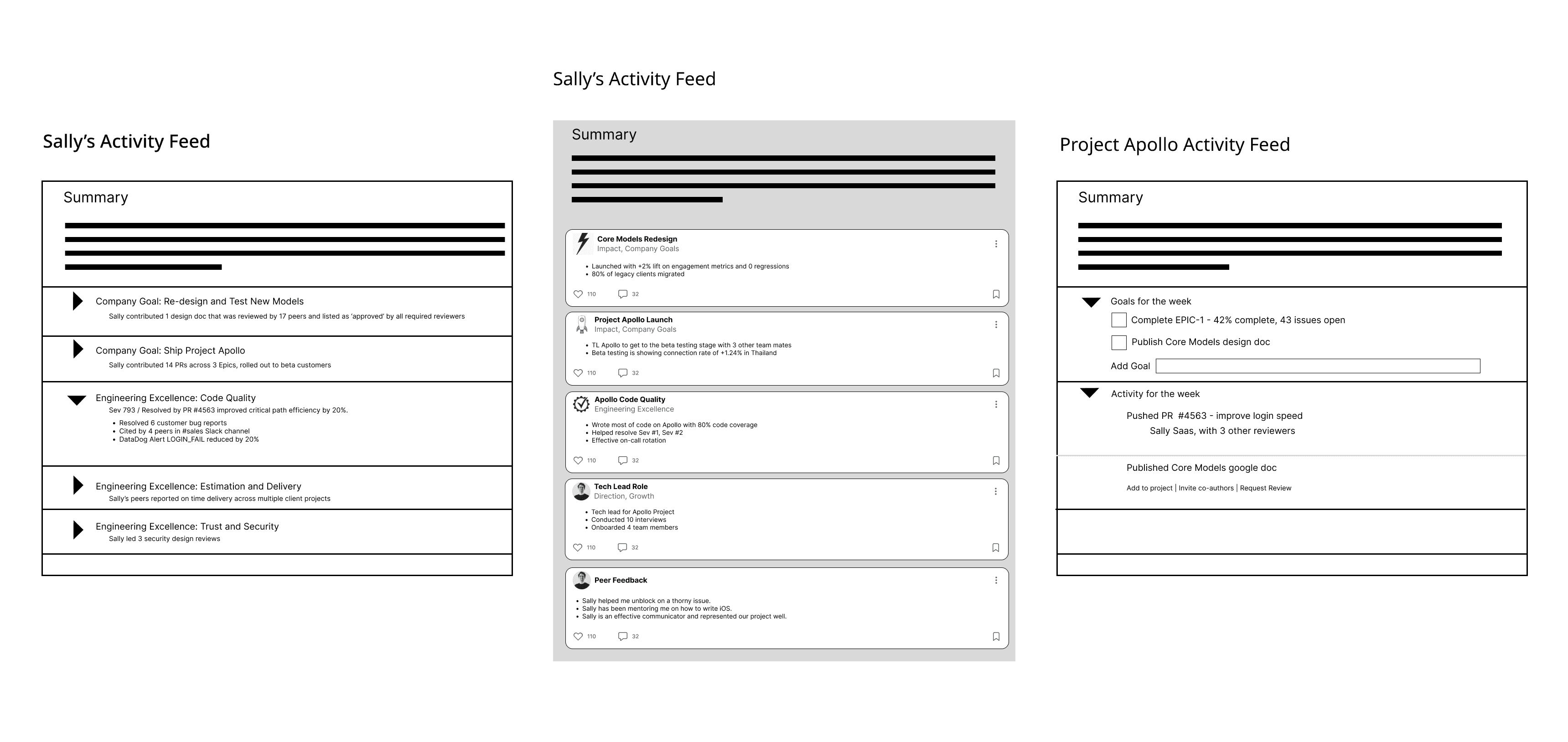 The client had initial low-fidelity wireframes to start off the design process. The low-fidelity wireframes reflected the basic layout of the activity feed page and multiplayer project page and the content that is included in the posts.